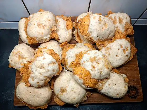 Co Ty Kuba, twaróg na ostro?? Jasne, a co 😏😬 Sam byłem w szoku, ale rzeczywiście. Twaróg w ostrej odsłonie, zamknięty ( przynajmniej częściowo 🤣 ) w pszenno - żytniej bułeczce, to coś co mnie bardzo zaskoczyło. Pozytywnie rzecz jasna. Twaróg utarty z ostrymi przyprawami i duszoną, do miękkości cebulką. Pasta kremowa, a pali jak szalona. Bułka doskonale wyrównuje smaki, a całość absolutnie fantastyczna ❤️ Szybko, smacznie i do syta. Udanego popołudnia kochani. Bądźcie bezpieczni 💪