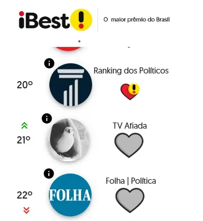 Fala pessoal! Nesse ano estamos concorrendo ao IBest e não sabíamos até agora. Estamos na 20º posição. Contribua para o reconhecimento de nosso trabalho que há 14 anos busca informar e melhorar a atuação da política brasileira! É só clicar aqui e confirmar o voto: premioibest.vote/963822785