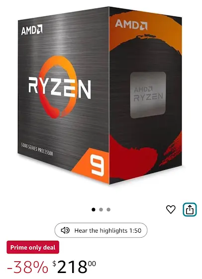 $218. Amazon has a good deal on Ryzen 9 if looking to build or upgrade amzn.to/4nxiuqJ