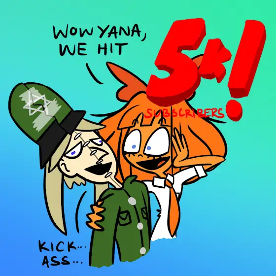 congrats on 5k subscribers @ONION_MARTYR1233 (tried to draw mymy and yana in his artstyle)