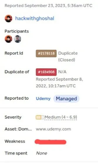 I'm found a bug from Udemy😃 But it's Duplicate 🥺🥺#hackerone #BugBounty