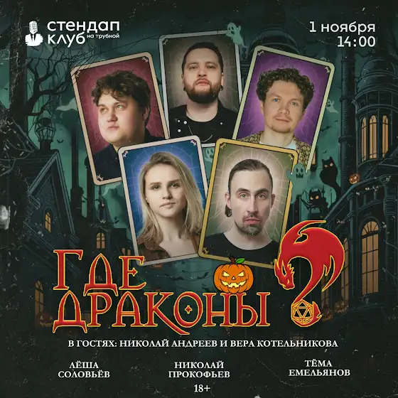 Хэллоуиновская игра в Подземелья и драконы в эту субботу в 14:00!!! Страшно-то как ууууу. Коля Андреев , Вера Котельникова, Артём Емельянов и Алексей Соловьев будут создавать страшилку вместе с вами. Берём билеты по ссылке ниже