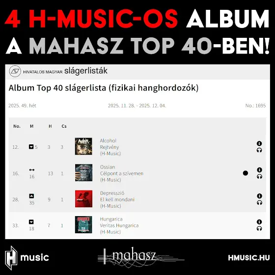 💥 4 H-Musicos album a MAHASZ 49. heti (fizikai hanghordozók) Top 40-es listáján! 👇