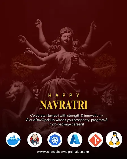 🌸⚙️ Celebrate Navratri with strength & innovation! CloudDevOpsHub wishes you prosperity, progress & high-package careers this festive season. 🚀💻