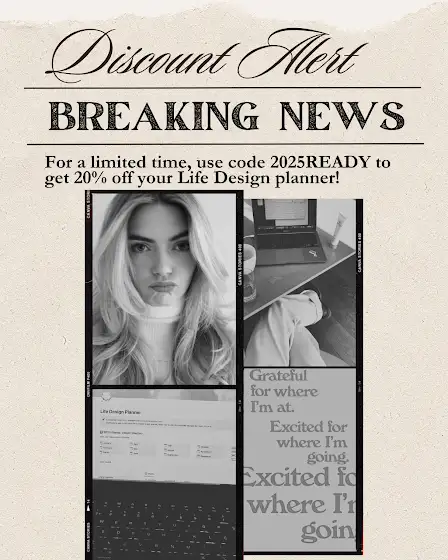 🎉 Surprise Discount Alert! 🎁✨ Ready to make 2025 your best year yet? My Life Design Planner is here to help you set clear goals, track habits, reflect on progress, and design a life you love💖 For a limited time, use code 2025READY to get 20% off your planner: nikatemplates.com/store/p/lifedesignplanner