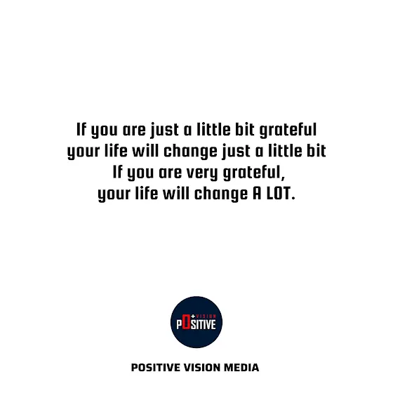 If you are just a little bit grateful, your life will change just a little bit. If you are very grateful, your life will change A LOT.#PositiveVisionMedia #ThinkPositive #PositiveVibes