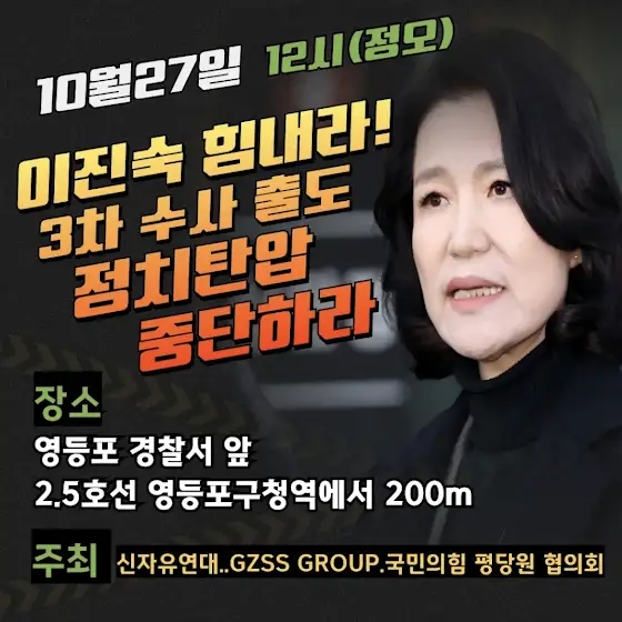이진숙 방통위원장님이 영등포 경찰서에 출석합니다.우리가 응원하는 것은 당연한 의무 일것 입니다많은 참석 부탁드립니다일시ㅣ10월 27일 12시(정오)장소ㅣ영등포 경찰서 앞 2.5호선 영등포구청역에서 200m