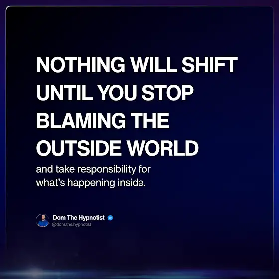 When you blame circumstances, people, or situations, you give away your power to change. Your life reflects what’s programmed in your subconscious, not what’s happening outside of you.
