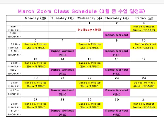⭐️Zoom 줌 수업 3월 일정입니다⭐️