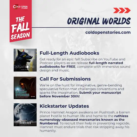 Get ready for a brand-new season of captivating productions from ColdOpenStories.com! 🎧📚 We're bringing you fresh, imaginative stories that will transport you to new worlds and keep you on the edge of your seat.