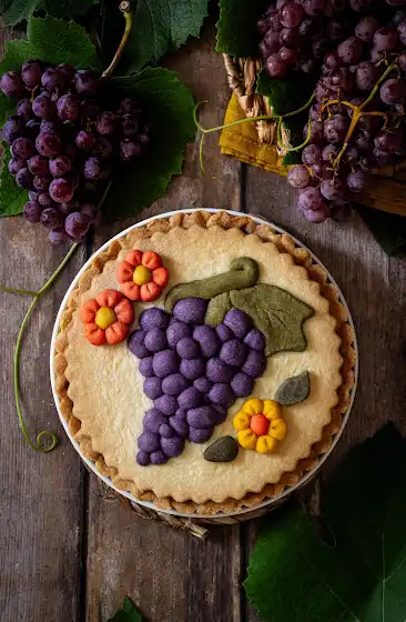 Crostata con intreccio e grappolo d’uva di frolla