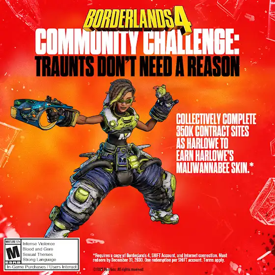 Complete 350,000 Contracts as Harlowe from Oct. 17-19 and we'll drop a SHiFT code for her "Maliwannabee" outfit, inspired by her character short "Family Reunion."