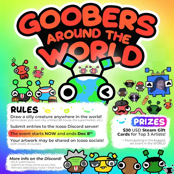 If you love gooblets and also love creating art, then this is the event for you! This is a quick little fanart contest with the theme of 'Goobers Around the World' - I wanna see you draw some silly creatures in the silliest locations!