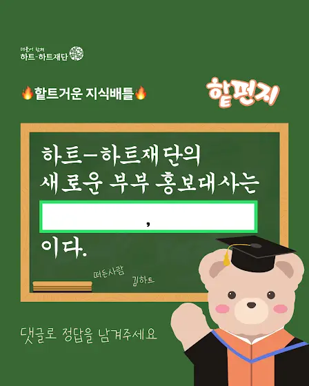 🎤 오늘의 문제 : "하트-하트재단의 새로운 홍보대사를 맞혀라!"