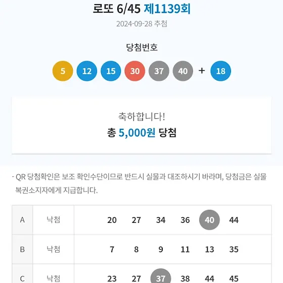 드디어 제가 로또 당첨이 되었습니다.