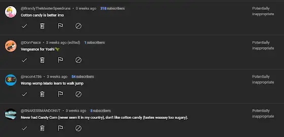 These comments were all held for review. How are these inappropriate? I'll be responding to as many comments as I can. Next time, I'ma just disable YouTube's auto-moderation lol