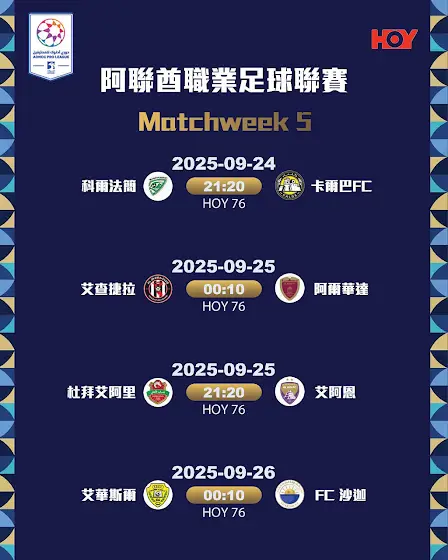 阿聯酋職業足球聯賽|艾查捷拉 vs 阿爾華達|9月25日 00:10|HOY 76