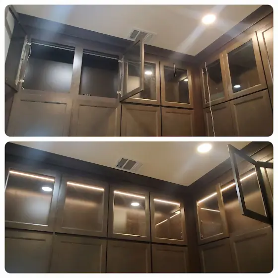 In this project, we installed dimmable LED tape lighting recessed into custom cabinetry, creating a sleek, elegant finish that transforms the space.