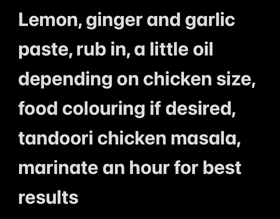@stuart1690 here’s what you asked for earlier for authentic Tandoori chicken making. Here’s how my mum makes it. I think this is all the ingredients.