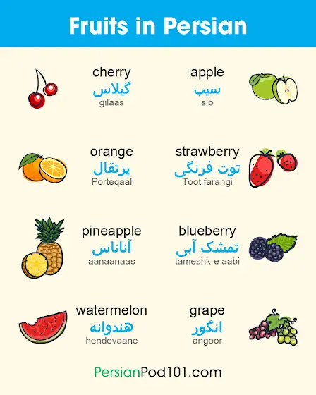Fruits in Persian! 🍓 PS: Get the best FREE Persian online resources, just click here www.persianpod101.com/?src=youtube_community_infog…