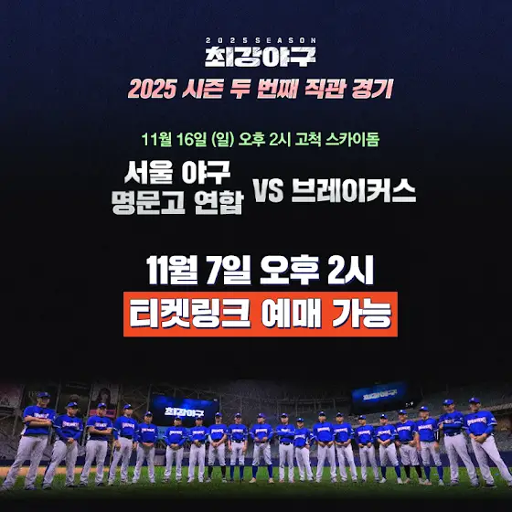 ๐ข ์ต๊ฐ์ผ๊ตฌ ์์ฆ ๋ ๋ฒ์งธ ์ง๊ด ์๋ด โพ๏ธ ๐ฅ์์ธ ์ผ๊ตฌ ๋ช ๋ฌธ๊ณ ์ฐํฉ VS ๋ธ๋ ์ด์ปค์ค๐ฅ ๐ ์ง๊ด ์ผ์ : 11์ 16์ผ (์ผ) ์คํ 2์ ๐ ์ฅ์ : ๊ณ ์ฒ ์ค์นด์ด๋ ๐ ์๋งค ์คํ : 11์ 7์ผ (๊ธ) ์คํ 2์ ๐ป ์๋งค์ฒ : ํฐ์ผ๋งํฌ