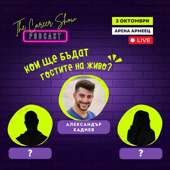 Ето защо се вълнуваме да споделим, че и тази година на Career Show в Арена Армеец ще имаме 2 специални епизода на живо с любимия ни водещ Александър Кадиев.