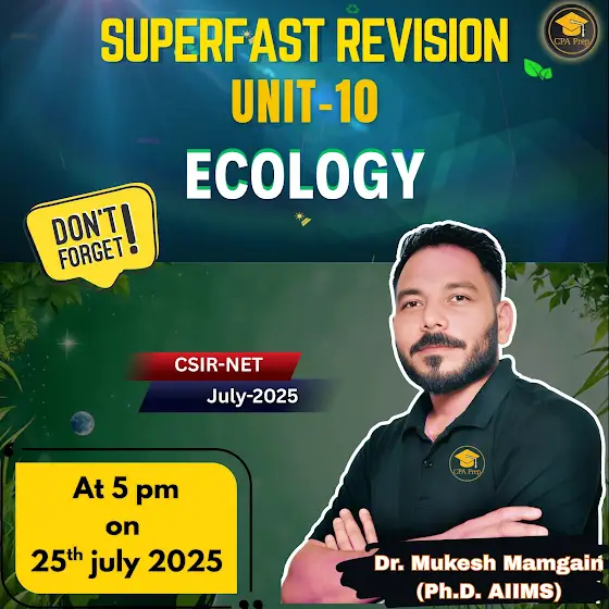 Get ready for a power-packed revision of Unit-10: Ecology with Dr. Mukesh Mamgain (Ph.D. AIIMS). This session will cover all high-yield concepts, tricks, and shortcuts to boost your CSIR-NET preparation in the final stretch!