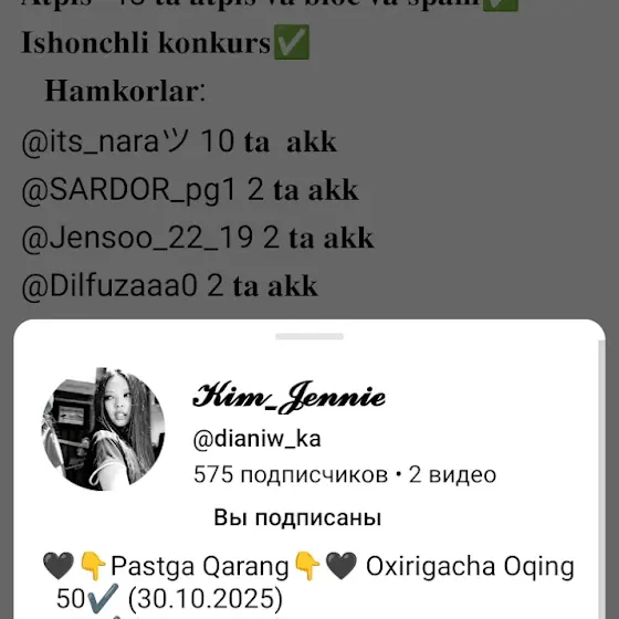 @kanal_yopildi-mnara isbottt @Feya_21ツ ga boshqa akkdan tashadim