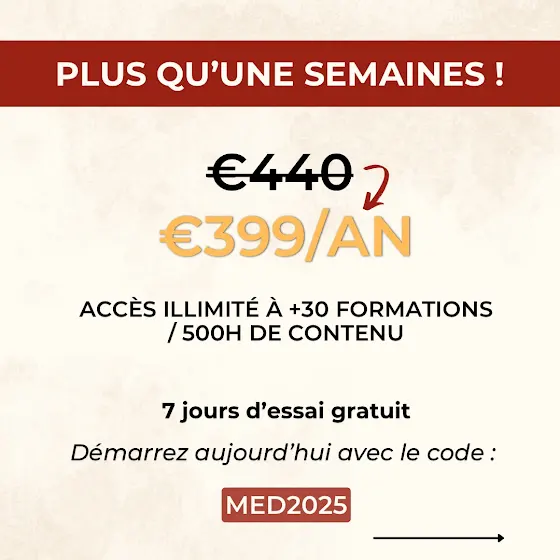 🔥 Tarif spécial : 399€/an au lieu de 440€ • 7 jours d’essai gratuit avec le code MED2025