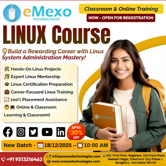 Are you ready to build a career with the best Linux Training in Bangalore? At eMexo Technologies, we provide a comprehensive Linux Course in Electronic City, Bangalore, designed for both freshers and working professionals.