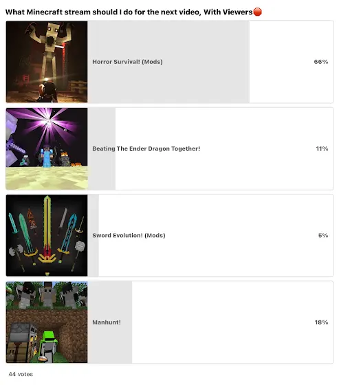As guys can see stream is starting on Sunday or Monday and horror mode has Won! So to play together in the horror stream you will need to join the link down in the comment or you will need to give us your discord name and your Minecraft username, (Bedrock Edition) with viewers🛑
