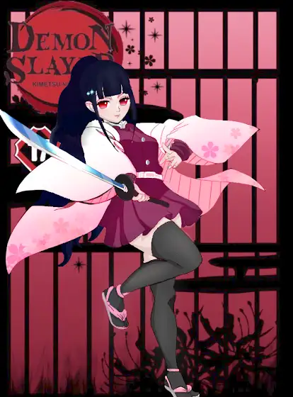 This is my own character in demon slayer i wanted to draw so now I added some things like i coloured the swords and background has crystal and flowers and a accessory on hair.