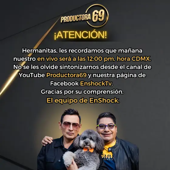 HERMANAAAAS el día de mañana por única ocasión nuestro en vivo del programa "EN SHOCK" lo realizaremos a las 12:00 del día hora de la CDMX. TE ESPERAMOS, CORRE LA VOZ . MIL GRACIAS!!!