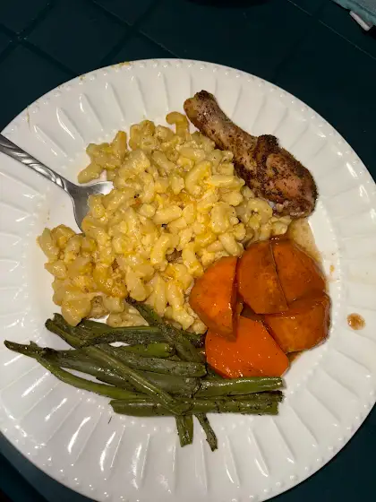 It's never too late in the evening to cook SOUL FOOD 😋 #yams #macncheese #greens #chicken