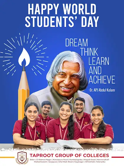On the birthday of APJ Abdul Kalam, we honour the spirit of learning, curiosity, and innovation. At Taproot Group of Colleges, our students are at the heart of everything we do.