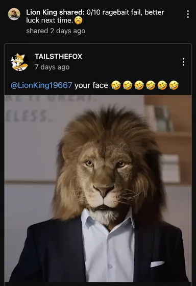 @LionKing19667 that’s literally a compliment he is calling u a lion which is a cool animal. also why are u copying my insults can’t think of your own.