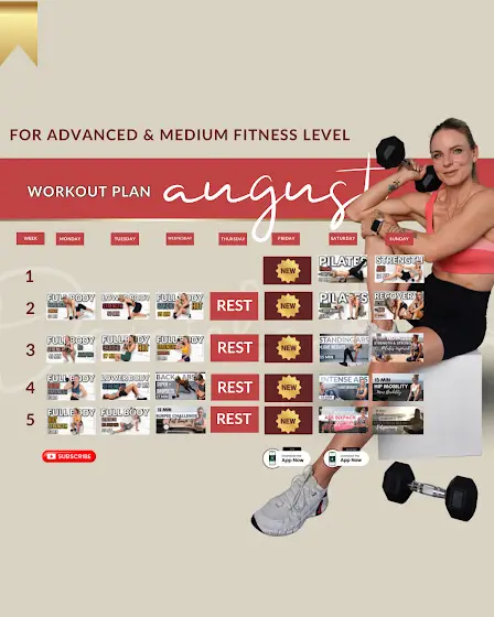 ๐บ๐ธ AUGUST WORKOUT PLAN 2025Hey Team, Letโs stay strong, energized and balanced all month long! ๐ช๐ฅHereโs your FREE Workout Plan for August including strength, core, and mobility sessions that help you sculpt, sweat and support your hormones.โจ Start now with the YouTube playlist:๐ www.youtube.com/playlist?list...๐ฉ Want the full overview with daily guidance?๐ Download the FREE August Plan as a PDF here:๐ danielakracht.com/fuer-0-euro/Letโs move together feel strong, powerful & feminine.Tag me in your workouts! #BalanceFitVibes