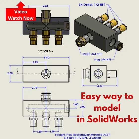 https://youtu.be/W8ivT2T64b4⚡ 3D #solidworkstutorial, How to make a Rectangular Manifold ?https://youtu.be/W8ivT2T64b4