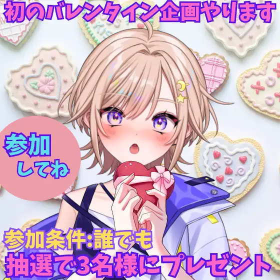 たまにはVチューバーぽい事しようと企画したのですが…ビックリするほど参加者が少なくてwww慣れねぇ事はするもんじゃないなぁなんて思って居るしだいです_(:3 」∠ )_ キャラに合わない位かわい子ぶった画像を添付しますので可愛そうに思った方は是非参加してやってください(๑・౩・๑)参加資格:日本在住の方2月14日か15日の配信でルーレットします