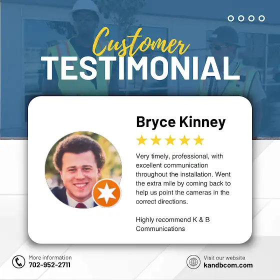 “Timely, professional, and great communication. K&B Communications even came back to help us get the cameras just right. Highly recommend!”