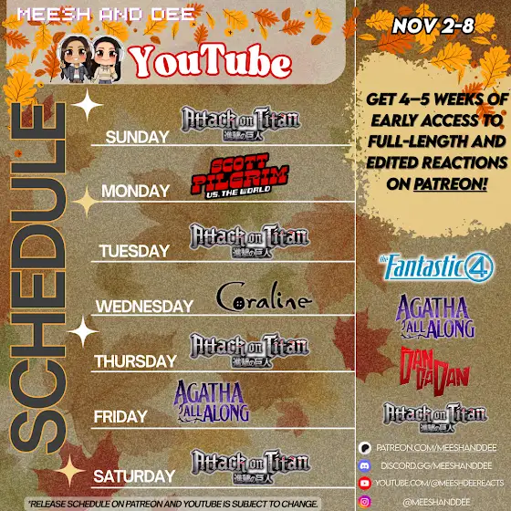 🗓️ NOV 2 – NOV 8 🍂 HAPPY NOVEMBER!! 🦃✨ THIS WEEK’S YT SCHEDULE! ✨🤎 Get 4–5 weeks of early content on Patreon:www.patreon.com/meeshanddee