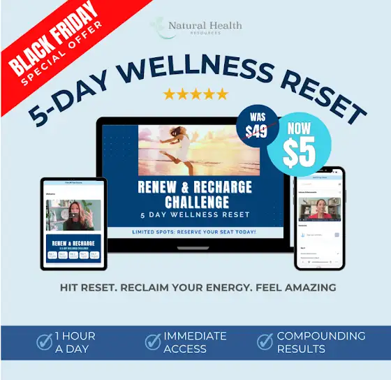 Happy Black Friday! Sharing a spectacular Black Friday Sale I'm running on my 5 Day Wellness Challenge: Renew & Recharge is on sale for $5. Just $1 a day to jump start your wellness goals. Join here: naturalhealth.krtra.com/t/g5p230Oz1urK