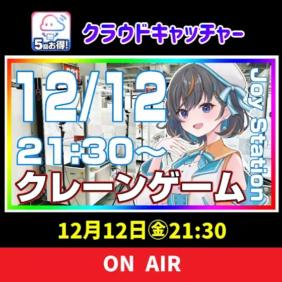【ライブ配信告知】本日21:30~クラウドキャッチャー様にてライブ配信を行います✨最近どうやって取ったらいいのか迷子中💦一緒に攻略探していきましょう💪配信枠は直前に立てます🙇♀️チャンネル登録して通知オンにしてお待ちください🔔youtube.com/c/JOYSTATION-YOUTUBE#クラウドキャッチャー#クレーンゲーム#オンクレ#Vtuber#YouTube#ゲーム実況#ワンピース#NARUTO#キングダム#葬送のフリーレン#呪術廻戦#ヒロアカ#オーバーロード#ドラゴンボール#ドラクエ#初音ミク#ガンダム#ちいかわ#サンリオ#PR