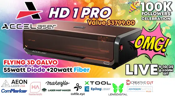 Well, I guess it time to let the cat out of the bag 🐱💻, its big cat! I just cant hold it in ANYMORE! because our friends over at ACCELaser had been SO generous and decide to throw in an ACCELaser HD 1 PRO to giveaway tonight live on Laser Engraving 911 to help celebrate reaching 100k Subscribers and give back to this amazing laser community! yep.. you heard me right, as if we didn't already have so much to giveaway from all of our amazing sponsors.. ACCELaser just pushed this event into maximum overdrive!! If you haven't already turned on notifications for this live event tonight 9/10/2025 at 8:00pm EST I suggest you do it now Join us, have fun, and lets make it a special night of giveaways, and laser nerd talk! youtube.com/live/N9ssMyDfVE8?si=4dsMrrJaxYuClpXq and if you dont know what the ACCELaser HD1 Pro is? you can check that out here! https://youtu.be/se07k5HhBss?si=MLwZd...