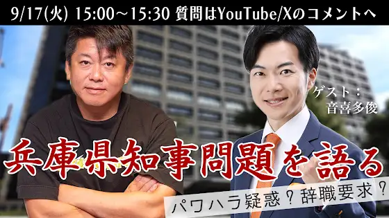 9月17日 15時から音喜多駿さんと兵庫県知事問題を語る生配信を行いますyoutube.com/live/vfHQeJhd7EU