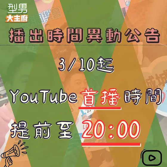 ⚠️型男大主廚Youtube首播時間異動⚠️