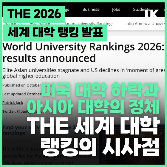 💡 2026년 THE 세계 대학 순위는 전 세계 고등 교육계의 지각 변동을 보여줍니다.