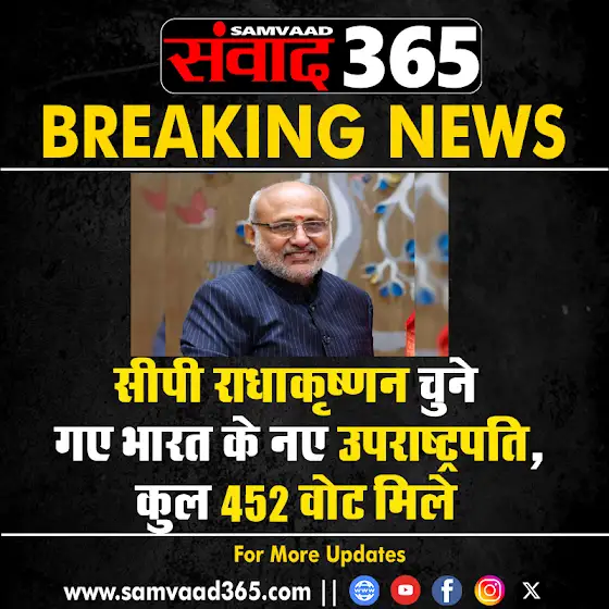 सीपी राधाकृष्णन चुने गए भारत के नए उपराष्ट्रपति, कुल 452 वोट मिले