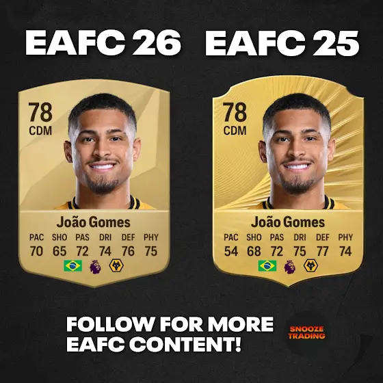 Joao Gomes 🇧🇷 receives a -16 pace downgrade in EAFC 26 ✅