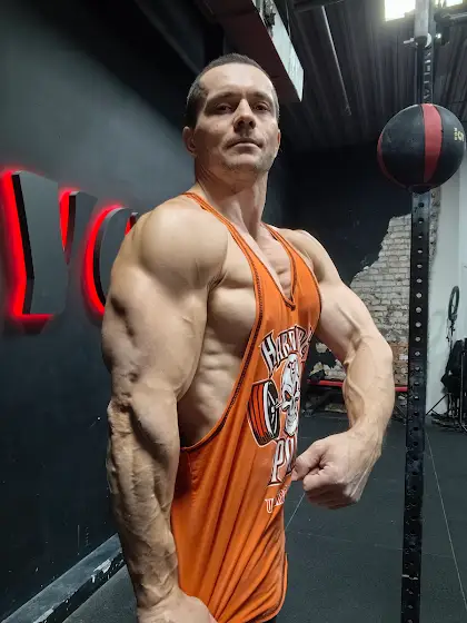 После тренировки 😎Вес 95,5 кг.Тренируюсь по программе "Армрестлинг-Бодибилдинг"